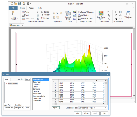 The plot in the graph above was based on tabular data. TeraPlot can also create plots based on mathematical expressions, and